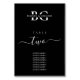 A minimalist black and white monogram initials wedding design. A simple design that uses the bride's and groom's initials and names to create an elegant classic monogram. A charming black and white minimalist monogrammed design with classy script typography. An elegant black and white monogram initials themed wedding invitation table number design with modern elements. Matching wedding invitations and other stationery items are also available. Customize the number and purchase each tables number individually according to how many table numbers you need.