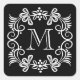 An elegant monogram sticker . The stylish monogrammed seal has a white floral swirls wreath pattern around the custom  monogram initial  to give your stickers a unique and chic look.