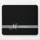 A trendy designer mousepad with a sleek black background and modern frosted white stripe. Personalize this elegant monogrammed mousepad by adding your name and initials.