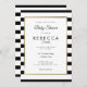 With a classic black and white stripe background, this elegant gender neutral baby shower, sprinkle or couples shower invitation features an elegant faux gold foil border framing your details set in chic typography. Designed by Thisisnotme©