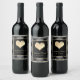 Elegant black and white striped wine label with a golden beige heart for the classy birthday party and chic celebrations.