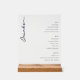 This elegant wedding menu features a minimalist design with clean lines and ample white space, creating a sophisticated and modern look. The color palette is simple, using black text on a crisp white background to emphasize clarity and elegance. Typography plays a key role, with a stylish cursive "Drinks" heading paired with structured sans-serif fonts for the beer, wine, and spirits lists, ensuring readability and visual interest. Perfect for a high-end event, this design conveys a professional yet inviting atmosphere, making it an ideal choice for couples seeking a refined touch for their special day.