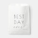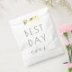 This elegant wedding favor bag features a minimalist design with the phrase "BEST DAY ever" prominently displayed in a mix of bold sans-serif and flowing cursive typography, creating a balance between strength and grace. The black text on a clean white background emphasizes clarity and timelessness, making it perfect for commemorating special moments. The layout is simple yet sophisticated, utilizing ample negative space to highlight the central message, ideal for celebrating weddings or significant life events.