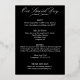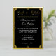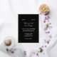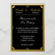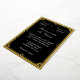 Il s'agit d'un faire-part de mariage de 5' x 7'', montré en noir élégant avec des accents de feuille d'or. L'invitation a une saveur art déco. Il s'agit d'une véritable feuille italienne, disponible en or, argent et or rose. Les accents de feuille comprennent le nom de la mariée et du marié, un coeur fantaisiste et une ligne horizontale, un motif de fleur de tulipe, et un contour de feuille à l'avant. Le revers comprend un motif "Notre journée spéciale", avec des détails sur le mariage.