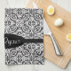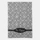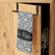 Elegant Black Baroque Damask Monogram Kitchen Towel