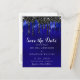 Elegant Black Blue Glitter Drips Save The Date Announcement Postcard