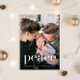 Elegant Christmas greeting features a beautiful black and white leafy botanical pattern with peace in big white type, and one full photo. Please shop this festive holiday collection for coordinating items!