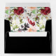 Elegant black envelope with gorgeous watercolor floral pattern in the inside, featuring burgundy blush and white florals with green botanicals. Bold envelope colour that will be completed and complemented with mailing labels in the same collection.