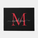 Elegant Black Burgundy Maroon Red Custom Monogram Script Name Doormat