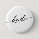 This elegant black calligraphy bride bridal shower button is perfect for a simple wedding shower. The neutral design features a minimalist button decorated with romantic and whimsical typography.