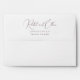 This elegant wedding envelope features a minimalist design with a clean, white background and a sophisticated dark hue for the text. The layout is vertically oriented, showcasing flowing cursive typography for the names at the top, followed by neatly aligned serif font for the address below. The absence of additional decorative elements emphasizes simplicity and formality, making it perfect for weddings or formal announcements. Its refined style conveys a sense of sophistication, ideal for those seeking a classic and timeless look.