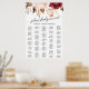 This elegant black calligraphy floral seating chart sign is perfect for a fall wedding. The neutral design features a minimalist poster decorated with romantic and whimsical typography and a floral arrangement of burgundy and blush pink flowers.