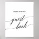 This elegant black calligraphy guest book sign is perfect for a simple wedding. The neutral design features a minimalist poster decorated with romantic and whimsical typography.