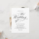This wedding invitation features an elegant and minimalistic design, with classic black calligraphy and serif fonts on a white background.