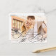 This pretty save the date postcard features romantic script and a large photo. On the front of the postcard, elegant calligraphy that reads "Save the Date" is written in black and overlays a landscape-orientation photo. The couple's names, wedding date, and wedding location are also written in black. Add additional details (such as a wedding website) on the back of the postcard.