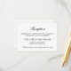 A refined reception card featuring flowing calligraphy script and classic serif typography in a timeless black-and-white design. Coordinates beautifully with a sophisticated wedding suite to share celebration details with guests. Customize the venue name, address, and reception details to match your event.