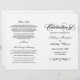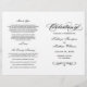 Elegant black and white "Celebration of Sacrament of Matrimony" wedding ceremony programs include vintage calligraphy script writing with beautiful flourishes and a scroll design accent. Personalize the custom text for your bridal party, ceremony information, thank you, and in memory (or other) messages. Note: these text weight paper programs arrive flat and require folding to assemble.