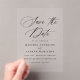 Elevate your wedding announcement with our exquisite acrylic save the date cards, designed for timeless elegance. Featuring "Save the Date" in graceful black calligraphy on a sleek, clear acrylic background, this design embodies simplicity and sophistication. Personalize your cards with your names, wedding date, location, and wedding website, displayed in bold black lettering for a modern, polished look. Perfect for couples seeking a chic and unique way to set the tone for their special day, these durable and customizable cards ensure your announcement is both stylish and unforgettable.