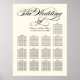 Elegant black calligraphy script wedding seating chart poster design features a monogram of the bride and groom names and wedding date and custom template text for table numbers and guest names. Black and soft white / light ivory colors.