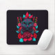 Elegant Black Cat Surrounded by Red Roses | Mouse Pad