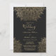 Elegant black chic gold floral mandala Wedding Invitation