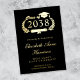Faire-part moderne de diplôme d'études supérieures noires avec votre choix d'or réel, argent ou rose feuille d'or, "Classe de" dans une illustration d'une couronne de laurier incorporant un topper et un diplôme de casquette grad et le nom du diplômé dans un script élégant. Ajoutez leur école, leur major, leurs honneurs ou leurs futurs plans dans la typographie serif classique.