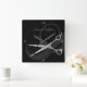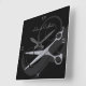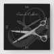 Elegant Black Curls Silver Scissors Hair Salon Square Wall Clock
