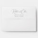 This elegant envelope features a simple, centred layout with graceful cursive script for the names and a clean serif font for the address. The monochromatic colour palette of black text on a white background emphasizes clarity and sophistication, making it perfect for formal occasions like weddings or significant announcements. The design's minimalistic approach focuses solely on typography, creating a timeless and refined aesthetic that conveys professionalism and intimacy. Ideal for personal yet formal contexts, this envelope combines legibility with an understated elegance.