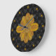Chic wall clock done in a black on black floral damask pattern. Elegant graphics of gold studs represent the numbers, around the edge, and a lovely gold tone Art Deco style decoration in the middle of the clock. Customize to add text. Lovely clock for any room of the house or office.