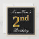 Elegant, Black, Faux Gold 2nd Birthday + Name Invitation