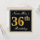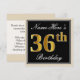 Elegant, Black, Faux Gold 36th Birthday + Name Invitation