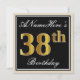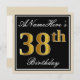 Elegant, Black, Faux Gold 38th Birthday + Name Invitation