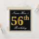 Elegant, Black, Faux Gold 56th Birthday + Name Invitation