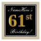 Elegant, Black, Faux Gold 61st Birthday + Name Poster