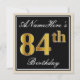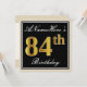 Elegant, Black, Faux Gold 84th Birthday + Name Invitation