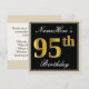 Elegant, Black, Faux Gold 95th Birthday + Name Invitation