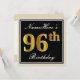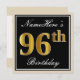 Elegant, Black, Faux Gold 96th Birthday + Name Invitation