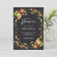 Featuring captivating black background adorned with delicate floral watercolor elements, this exquisitely designed Elegant Black Floral Bridal Shower Invitation sets the tone for a modern and chic celebration. The earthy tones of the florals, including terracotta and burnt orange, evoke the beauty of the fall season, making it a perfect choice for an autumn bridal shower. The design features the perfect blend of elegance and contemporary style, making it ideal for any black wedding theme. Impress your guests with this striking invitation, as you welcome them to an event that promises warmth, love, and a truly unforgettable experience. Use the design tool to customize the text size, colours, font styles, and placement to your liking. For matching items, visit the Black Floral Wedding collection.