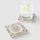 Elegant Black Floral Frame Lion Sugar Skull Stone Coaster
