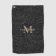 Elegant Black Floral Gold Script Monogram Golf Towel