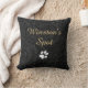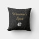 Custom Pet Name Black Floral Botanical Gold Script Throw Pillow. Reserve seating for your best friend!