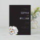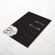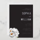 This elegant wedding invitation features a sophisticated black background with crisp white text, creating a striking contrast. The design includes delicate illustrations of peonies in the bottom left corner, adding a touch of natural beauty and softness to the overall look. Classic serif typography enhances the formal and refined aesthetic, while ample negative space ensures clarity and focus on the essential details. Perfect for couples seeking a timeless and minimalist style, this invitation sets the tone for an unforgettable celebration.