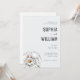 This elegant wedding invitation features a minimalist layout with clean lines and ample negative space, creating a sophisticated and modern look. The design includes a delicate floral illustration of a peony in white and yellow tones on the left side, adding a touch of natural beauty. The typography combines bold uppercase letters for the names with a cursive script for "and," enhancing the formal yet inviting tone. Perfect for couples seeking a refined and timeless aesthetic, this invitation is ideal for celebrating a special union with grace and style.