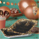 This is an elegant 50th birthday paper plates with a black and gold theme. It features the large number "50" in metallic gold at the top, surrounded by glittery gold confetti details. The text is written in a combination of bold and script fonts. The overall design is sophisticated and festive, ideal for a milestone celebration. Customize for a personal touch!