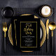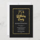 Modern, elegant and classy black and faux gold glitter 75th birthday party design. Composite by Holiday Hearts Designs (rights reserved).