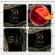 Elegant Black Gold Agate 50th Anniversary Party Square Paper Coaster