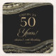 Elegant Black Gold Agate 50th Birthday Party Square Paper Coaster