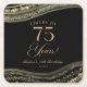 Elegant Black Gold Agate 75th Birthday Party Square Paper Coaster
