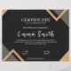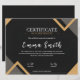 An elegant certificate of achievement featuring a modern black background with luxurious gold geometric accents. Perfect for employee recognition, academic awards, corporate appreciation, school achievements, or professional milestones. This stylish and timeless certificate design is ideal for offices, schools, businesses, and formal award ceremonies.