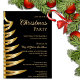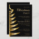 Invite guests to a night of holiday elegance with this stunning black and gold Christmas party invitation. A chic, stylized conifer tree in gleaming gold foil-look adds a sophisticated touch to the left side, while the festive invitation details shine in rich gold lettering. The classic all-caps font, softened by a few lines in graceful script, ensures an eye-catching design that is perfect for upscale gatherings. Fully customizable, this invitation lets you personalize all essential party details, including RSVP info and a special section for guest contributions, whether a dish to share, treats, or a charitable toy donation. Designed to impress, this invitation is ideal for formal holiday parties, office celebrations, or stylish family gatherings, setting a luxurious tone from the moment it’s received.